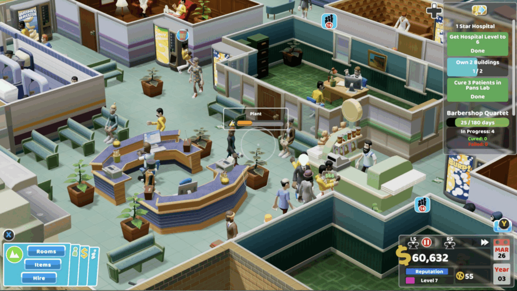 En este simulador de gestión hospitalaria estás a cargo de la institución: contratas personal, investigas nuevas curas, gestionas finanzas y te enfrentas a crisis. En listas recientes de mejor simulador de 2025 aparece como uno que “lleva al extremo los retos de la administración hospitalaria virtual”.